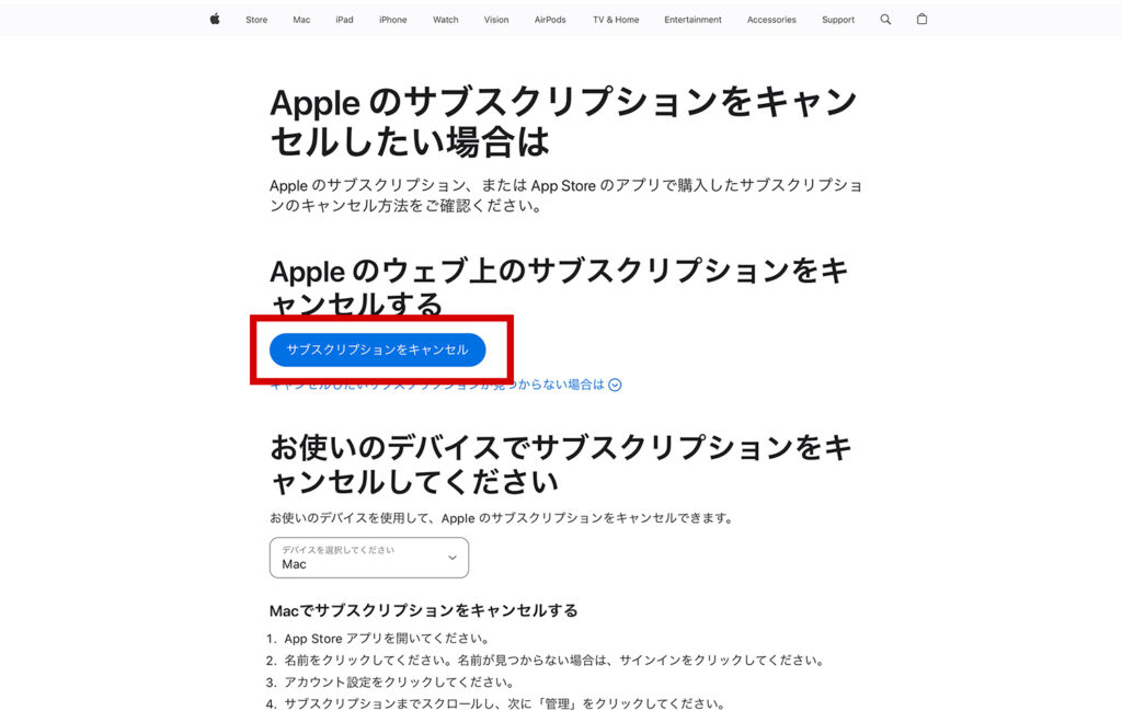 - App Store のサブスクリプションを解除