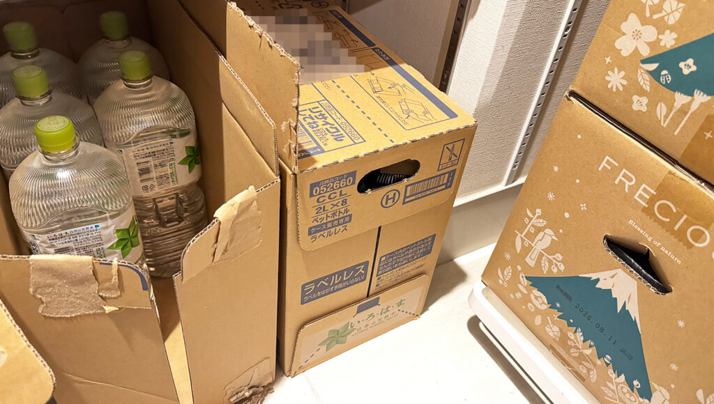以前は5年保存などの「長期保存水」を箱買いしていましたが、今はやめています。理由は「場所を取る割に、日常で使いにくいから」です。