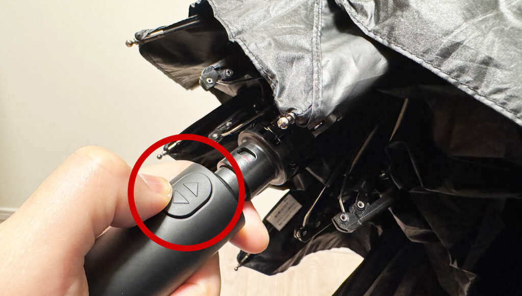 手元で開閉をコントロールできるボタン。半年間使い込んでも、そのクリック感は小気味よいままです。