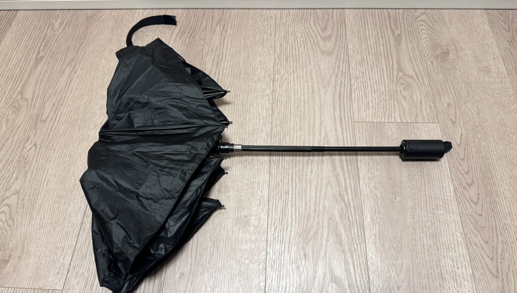以前の僕は「折りたたみ傘は消耗品」と割り切り、軽さ最優先で150gのカーボンファイバー傘を愛用していました。