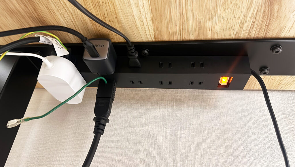ここがポイント:差し込み口の向きが工夫されており、大きなACアダプター同士が干渉しにくい設計。デスク裏という限られた空間では、このわずかな設計の差が設置のしやすさを左右します。